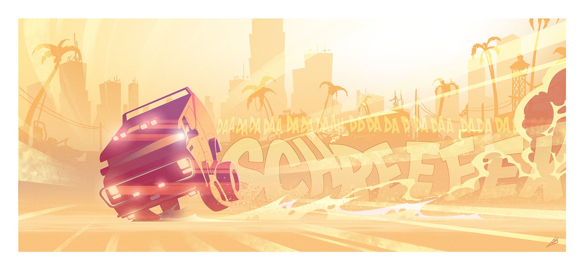 This illustration is inspired by the outstanding chases featured in The A-Team, a staple of my Saturday evenings in the 80s.